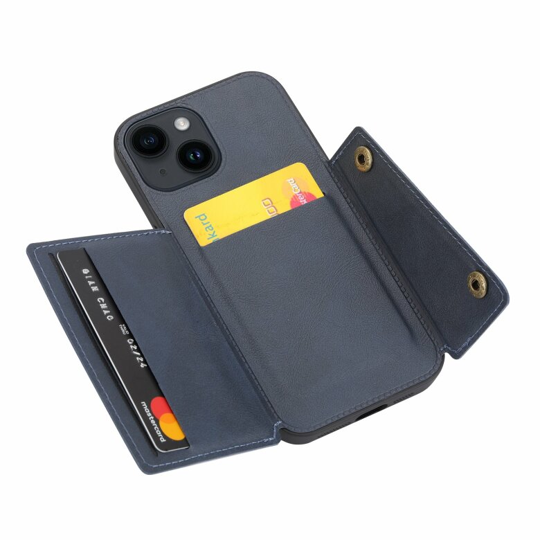 iPhone 15 - Lyxigt Retro Läder Plånboksfodral 4-Kortfack